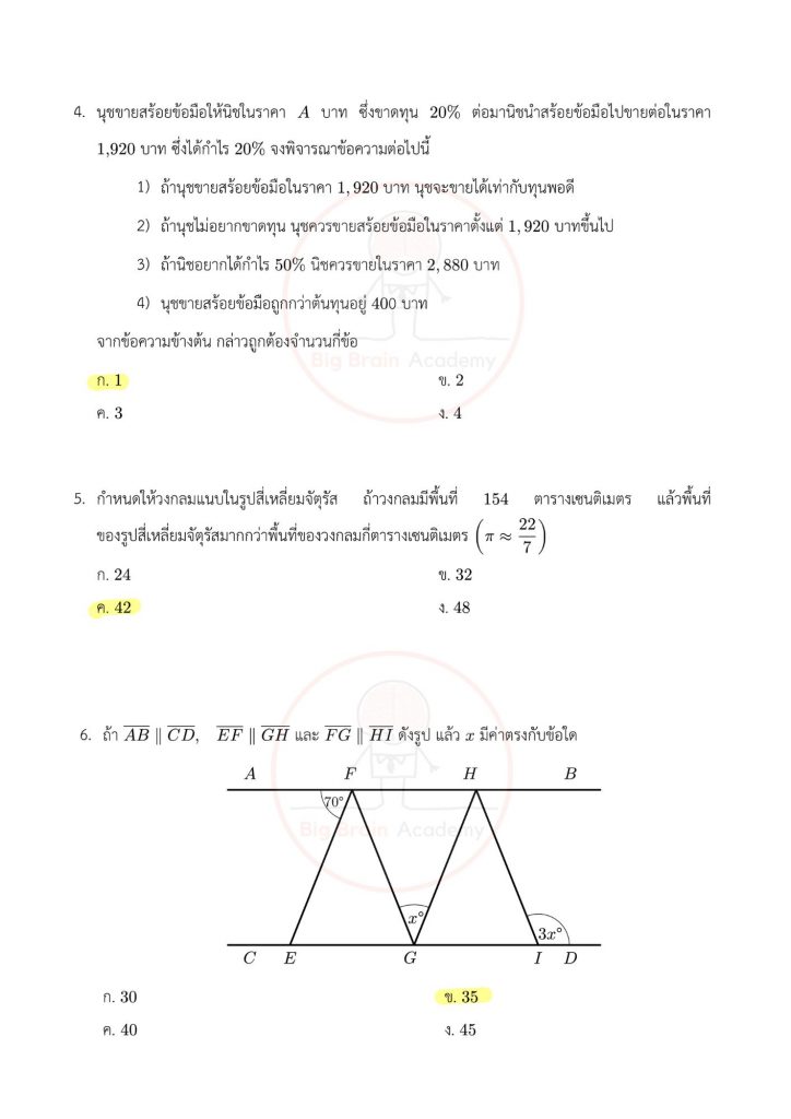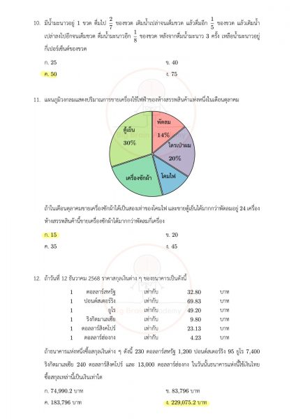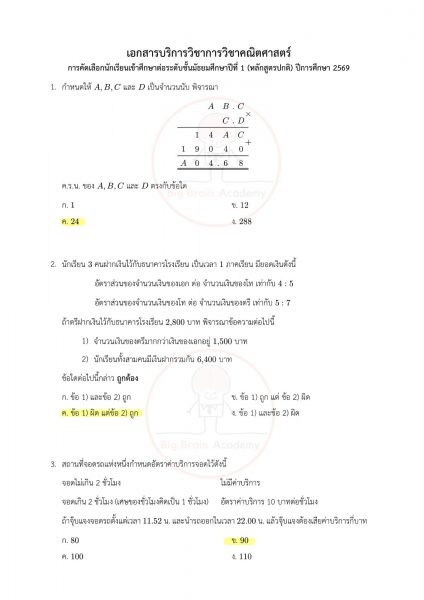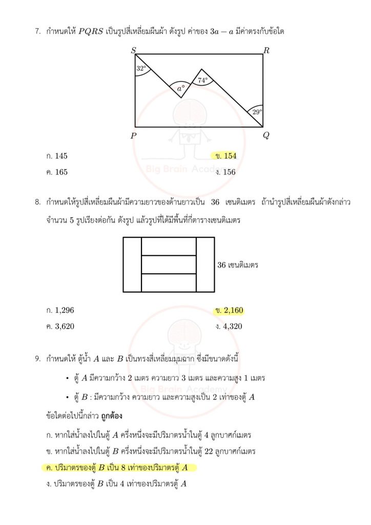 วิชาคณิตศาสตร์ไม่ได้วัดแค่ความจำสูตร แต่เน้นการ “คิดเป็นขั้นตอน” และเข้าใจเหตุผลเบื้องหลังของคำตอบ ข้อสอบจะมีทั้งโจทย์คำนวณ โจทย์วิเคราะห์สถานการณ์ และโจทย์ที่ต้องอ่านให้ละเอียดก่อนลงมือทำ บางข้ออาจดูเหมือนง่าย แต่ถ้าอ่านไม่ครบหรือคิดข้ามขั้น ก็อาจพลาดได้
