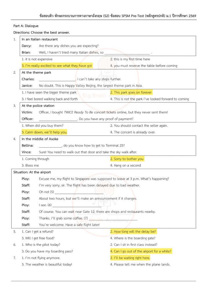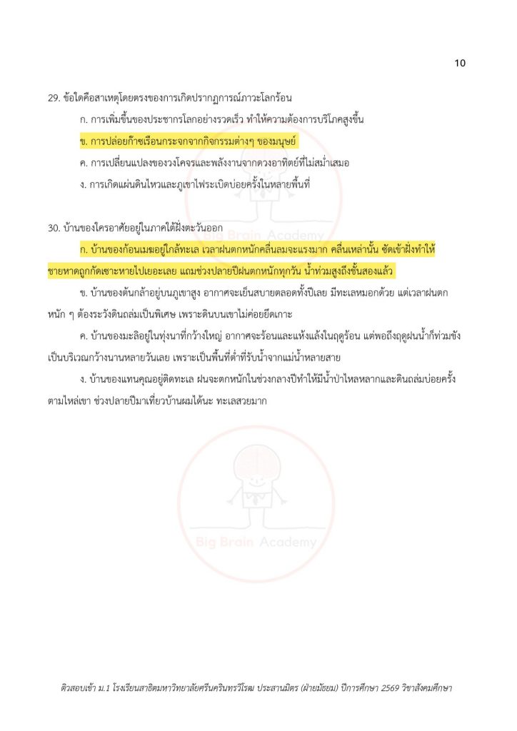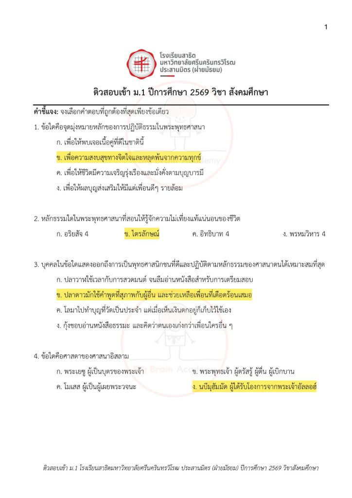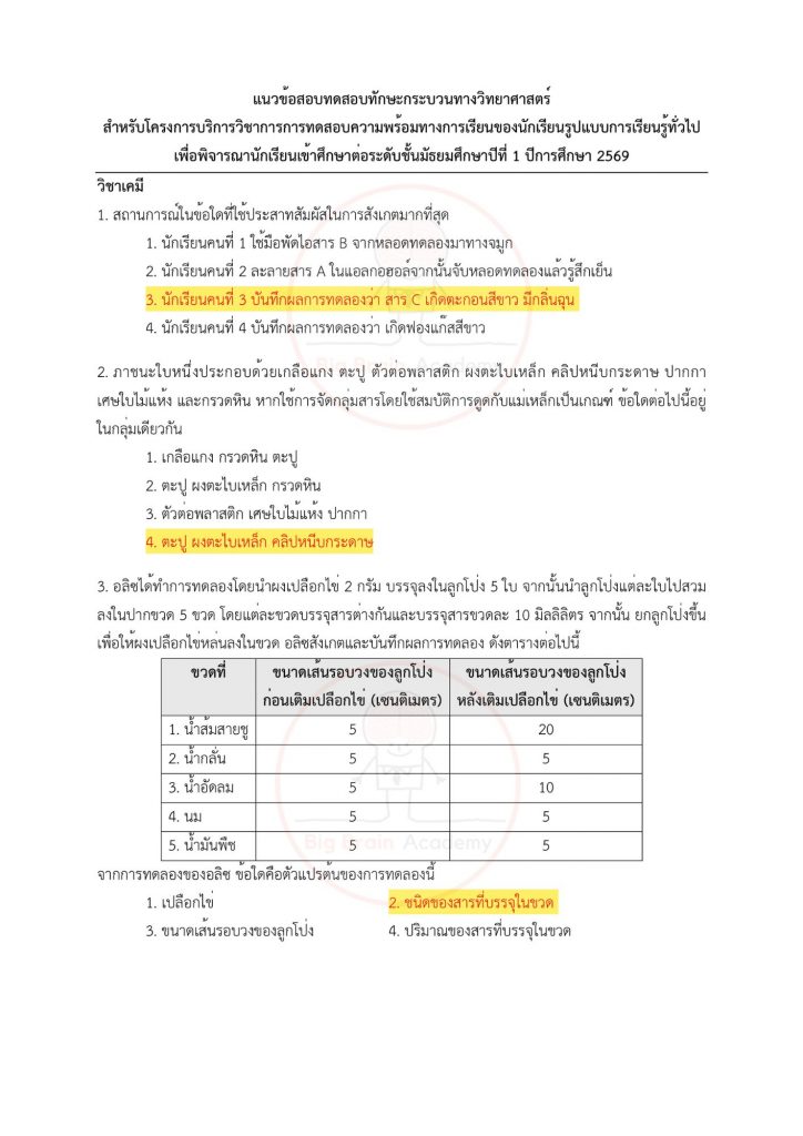 การได้เปิดดูตัวอย่างล่วงหน้า จะช่วยให้น้อง ๆ มองเห็นจังหวะของข้อสอบ เข้าใจว่าควรระวังจุดไหน และควรเตรียมตัวเสริมเรื่องใดเพิ่มเติม ไม่จำเป็นต้องทำให้ครบทุกข้อ หรือถูกทุกข้อ สิ่งสำคัญคือการสังเกตแนวคิด ฝึกอ่านโจทย์อย่างรอบคอบ และค่อย ๆ สร้างความคุ้นเคยกับรูปแบบข้อสอบ เมื่อถึงวันสอบจริง น้อง ๆ จะรู้สึกว่า “ไม่ใช่สิ่งที่ไม่เคยเห็นมาก่อน” และสามารถทำข้อสอบได้อย่างมั่นใจมากขึ้นค่ะ จากนี้ไป มาดูตัวอย่างของแต่ละวิชากันได้เลยค่ะ 📘✏️❤️