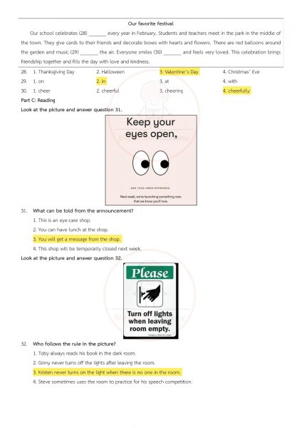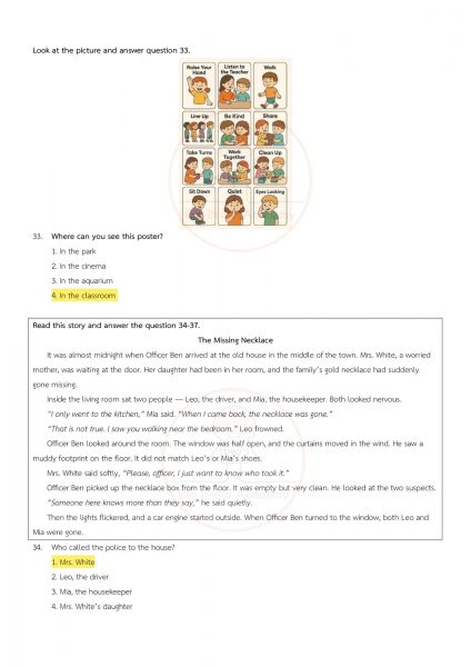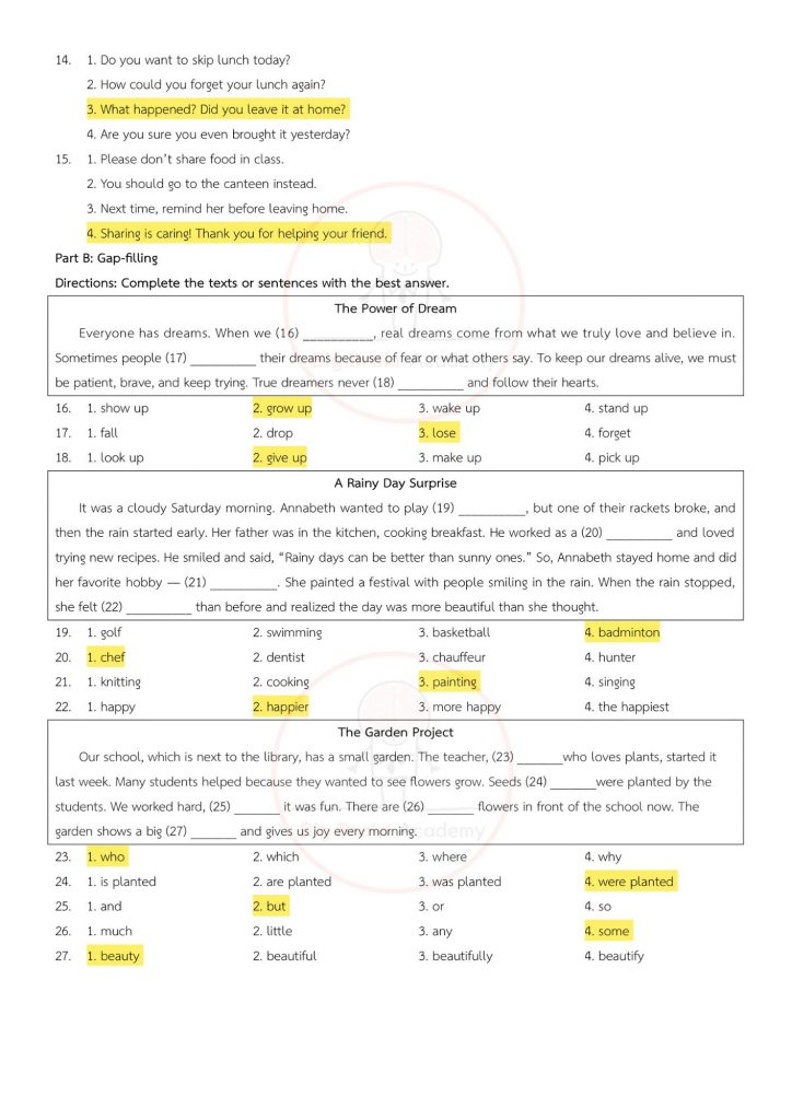 ภาษาอังกฤษจะมีทั้งบทสนทนา เติมคำ อ่านบทความ และคำถามวัดความเข้าใจ ข้อสอบมักวัดทั้งคำศัพท์ ไวยากรณ์ และการอ่านจับใจความ บางข้อดูเหมือนง่าย แต่ต้องดูบริบทของประโยคให้ดี เพราะคำตอบที่ถูกต้องต้อง “เหมาะสมกับสถานการณ์” มากที่สุด การอ่านบ่อย ๆ ฝึกทำข้อสอบหลายแนว และทบทวนคำศัพท์สม่ำเสมอ จะช่วยให้ทำคะแนนได้ดีขึ้นมาก
