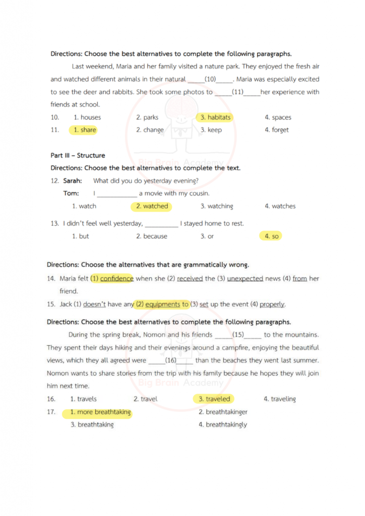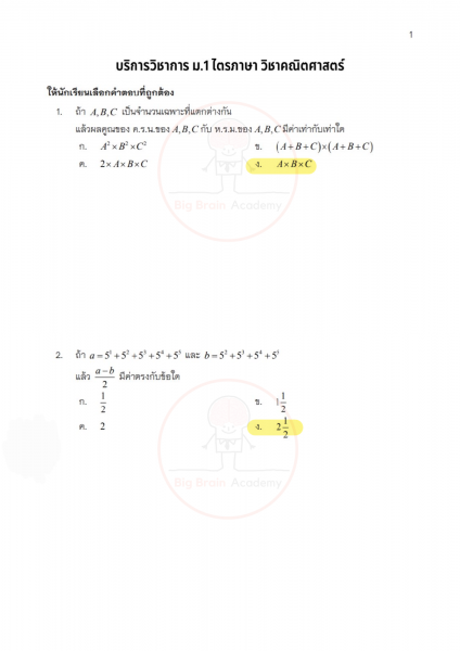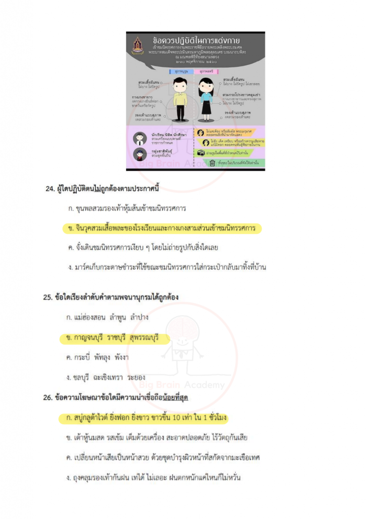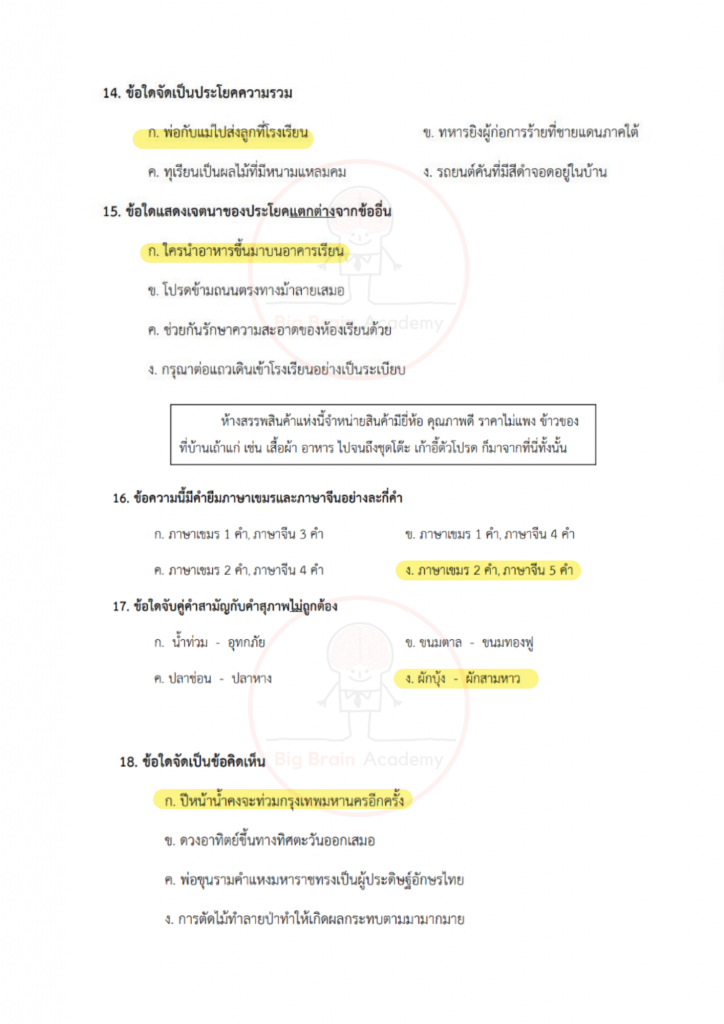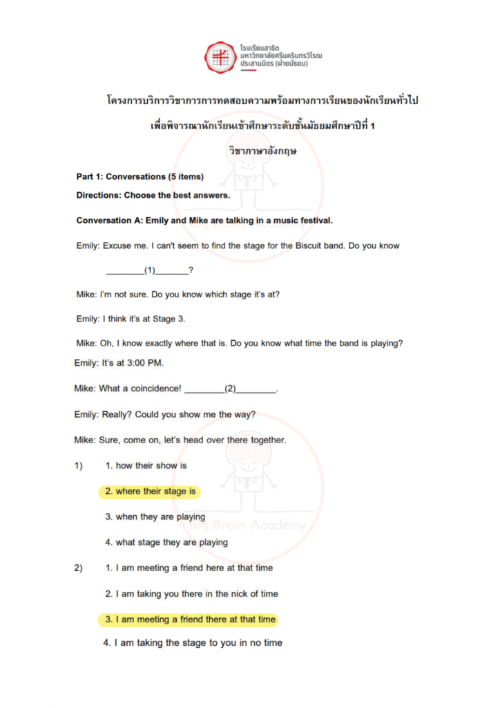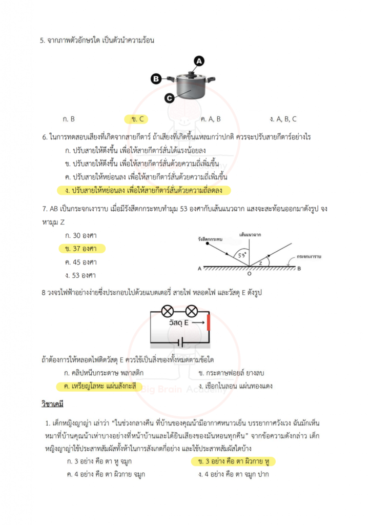 การได้เปิดดูตัวอย่างล่วงหน้า จะช่วยให้น้อง ๆ มองเห็นจังหวะของข้อสอบ เข้าใจว่าควรระวังจุดไหน และควรเตรียมตัวเสริมเรื่องใดเพิ่มเติม ไม่จำเป็นต้องทำให้ครบทุกข้อ หรือถูกทุกข้อ สิ่งสำคัญคือการสังเกตแนวคิด ฝึกอ่านโจทย์อย่างรอบคอบ และค่อย ๆ สร้างความคุ้นเคยกับรูปแบบข้อสอบ เมื่อถึงวันสอบจริง น้อง ๆ จะรู้สึกว่า “ไม่ใช่สิ่งที่ไม่เคยเห็นมาก่อน” และสามารถทำข้อสอบได้อย่างมั่นใจมากขึ้นค่ะ จากนี้ไป มาดูตัวอย่างของแต่ละวิชากันได้เลยค่ะ 📘✏️❤️