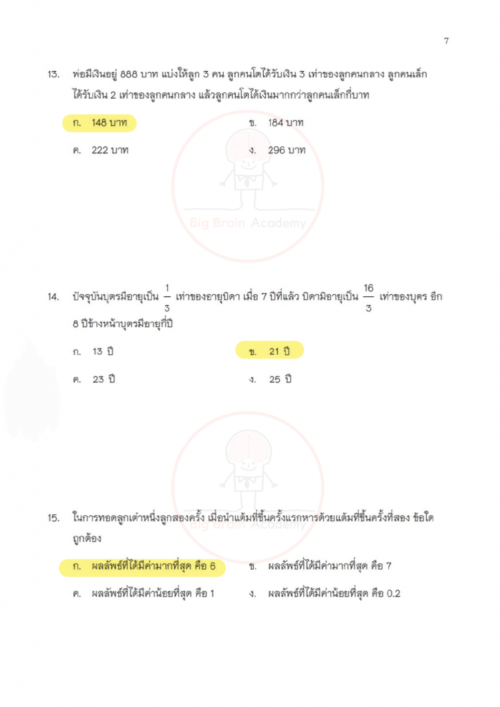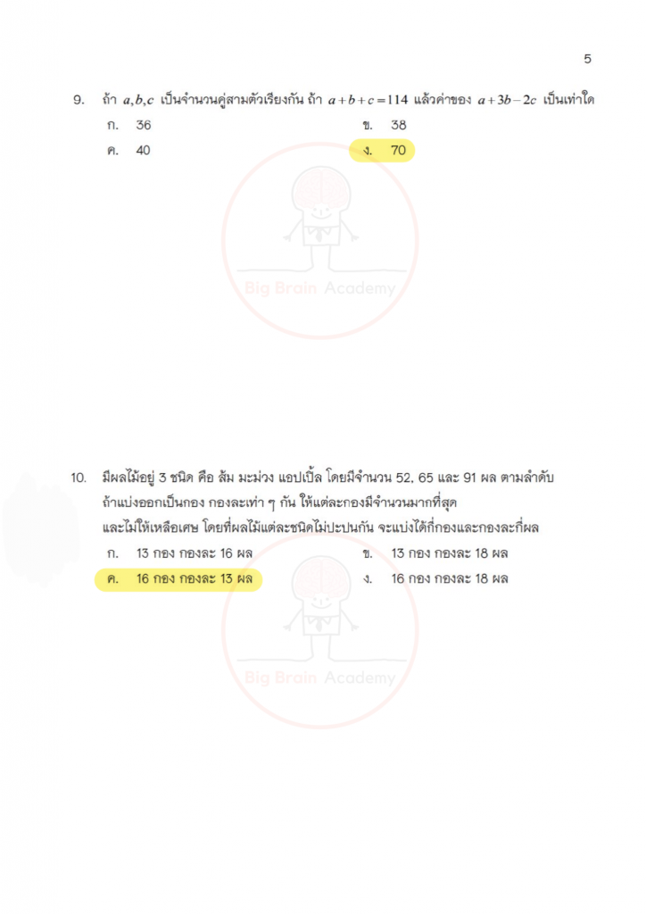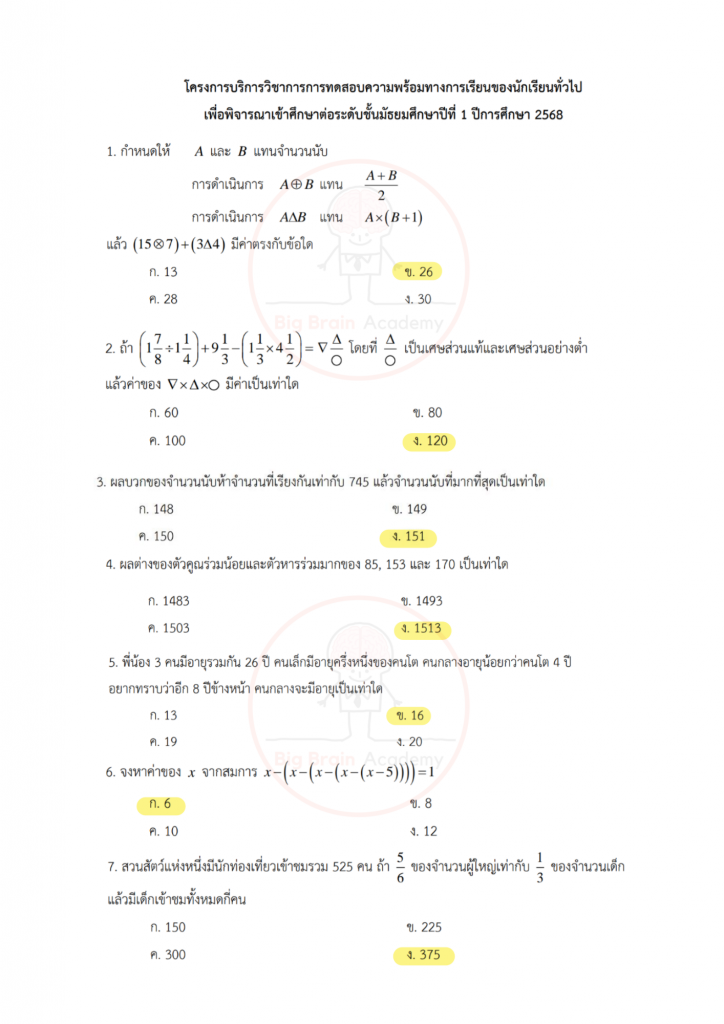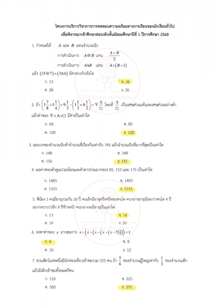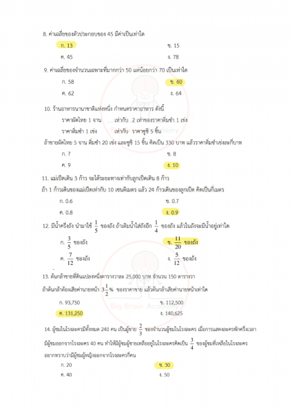 วิชาคณิตศาสตร์ไม่ได้วัดแค่ความจำสูตร แต่เน้นการ “คิดเป็นขั้นตอน” และเข้าใจเหตุผลเบื้องหลังของคำตอบ ข้อสอบจะมีทั้งโจทย์คำนวณ โจทย์วิเคราะห์สถานการณ์ และโจทย์ที่ต้องอ่านให้ละเอียดก่อนลงมือทำ บางข้ออาจดูเหมือนง่าย แต่ถ้าอ่านไม่ครบหรือคิดข้ามขั้น ก็อาจพลาดได้