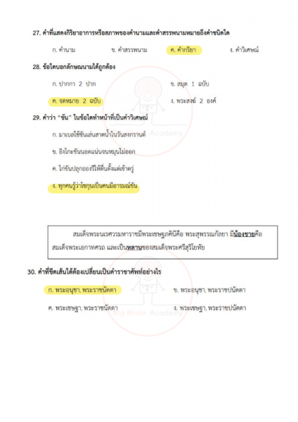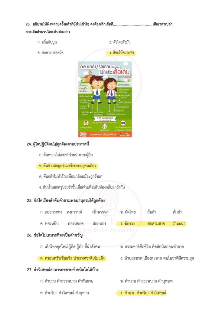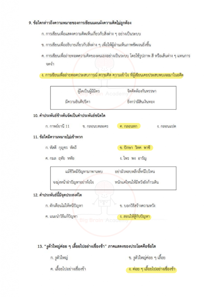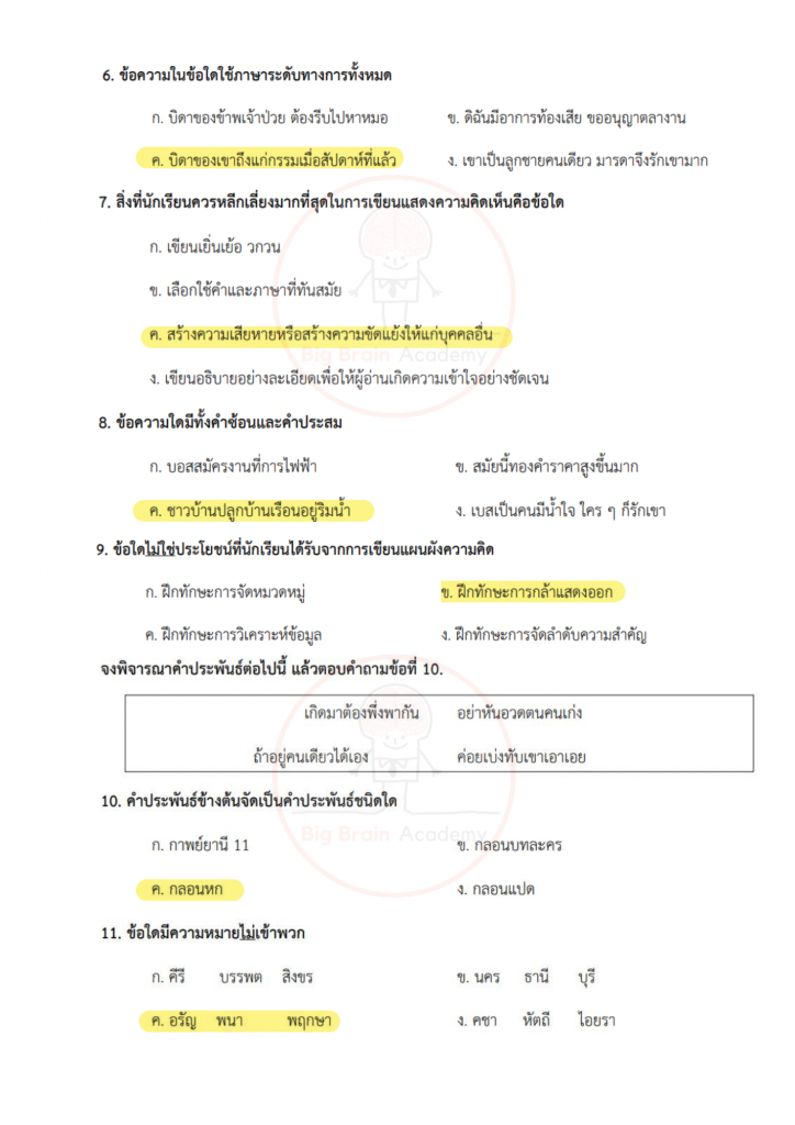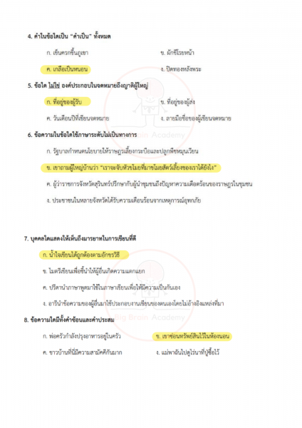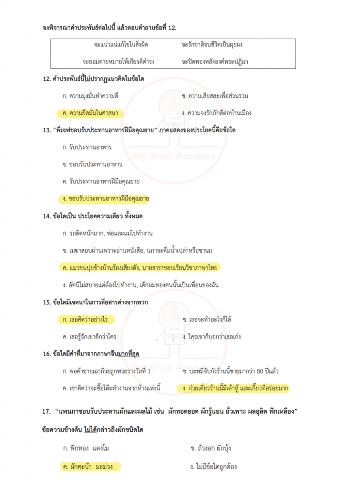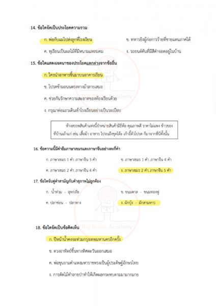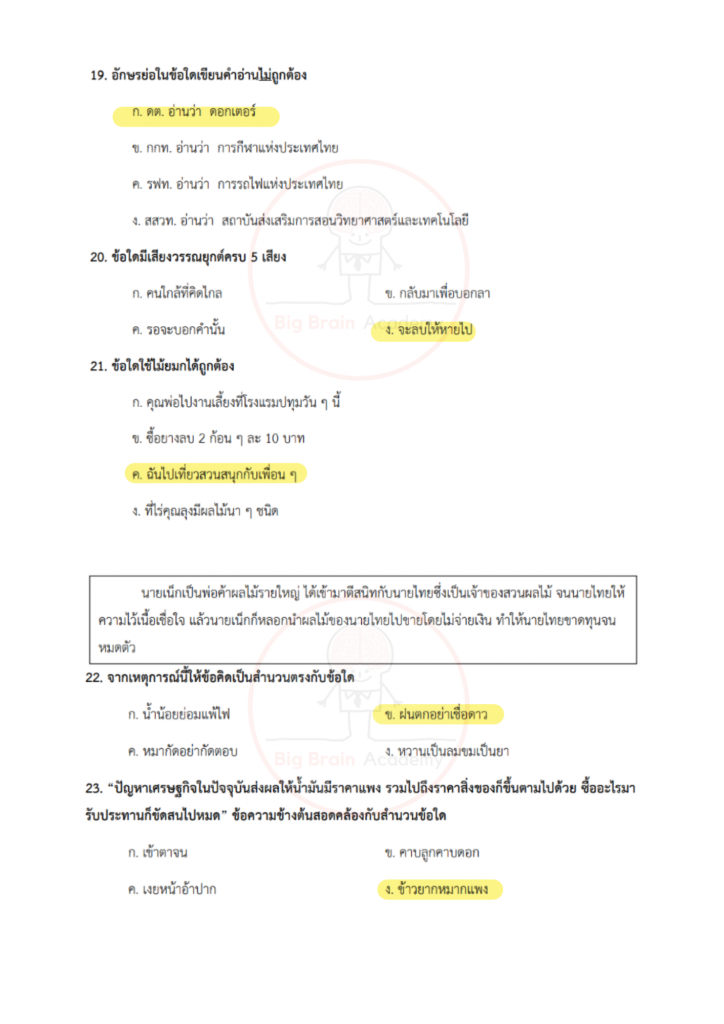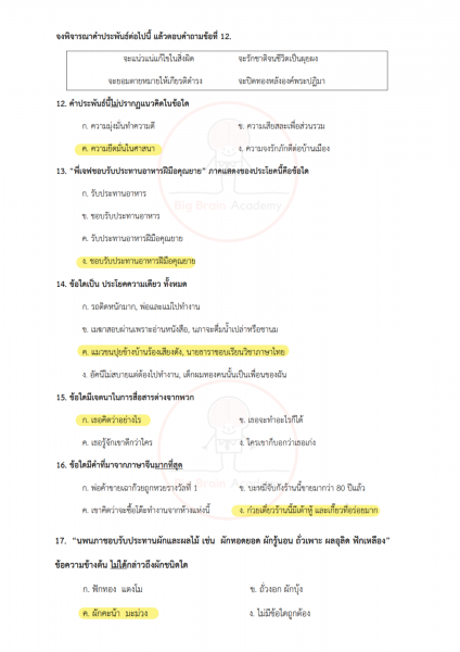 ภาษาไทยเน้นทั้งการอ่านจับใจความ การวิเคราะห์ความหมาย และความเข้าใจหลักภาษา ข้อสอบอาจมีบทความสั้น ๆ บทกลอน หรือข้อความให้ตีความ บางข้อจะวัดความเข้าใจเรื่องชนิดของคำ การใช้คำให้ถูกต้อง หรือการเรียงลำดับเหตุการณ์ วิชานี้ต้องอาศัยความละเอียดและความเข้าใจจริง ไม่ใช่อ่านผ่าน ๆ เพราะคำถามบางข้อจะซ่อนคำตอบไว้ในรายละเอียดเล็ก ๆ
