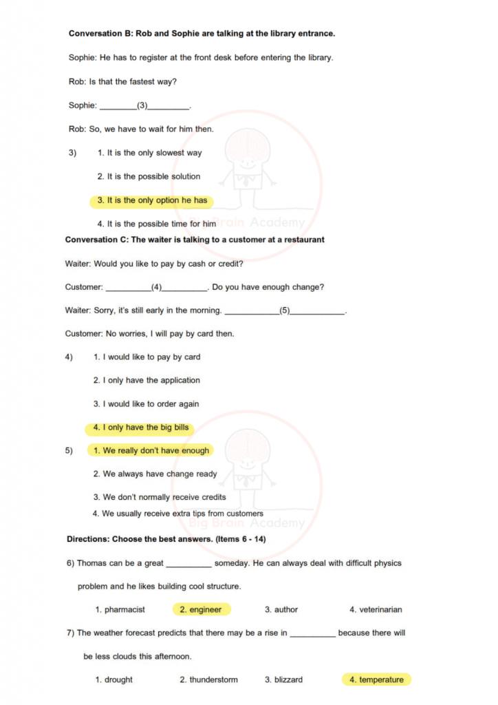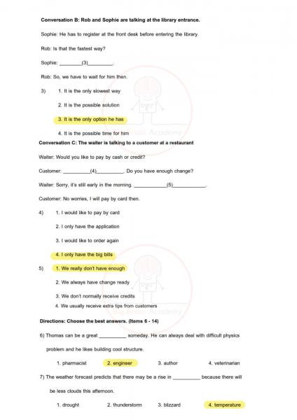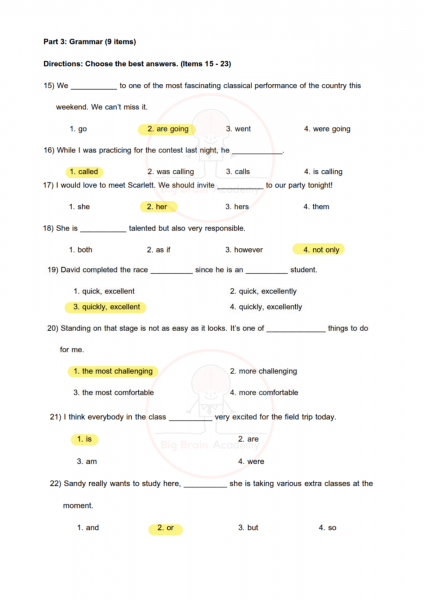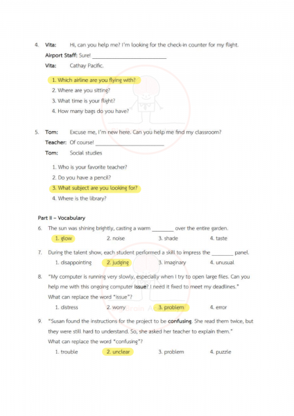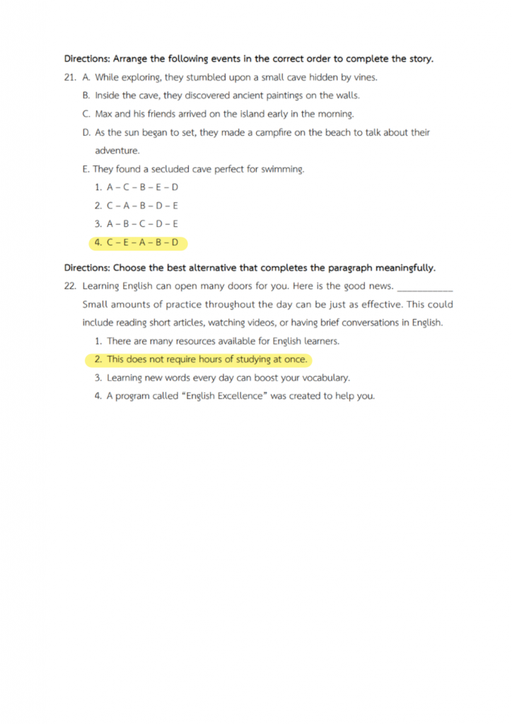 ภาษาอังกฤษจะมีทั้งบทสนทนา เติมคำ อ่านบทความ และคำถามวัดความเข้าใจ ข้อสอบมักวัดทั้งคำศัพท์ ไวยากรณ์ และการอ่านจับใจความ บางข้อดูเหมือนง่าย แต่ต้องดูบริบทของประโยคให้ดี เพราะคำตอบที่ถูกต้องต้อง “เหมาะสมกับสถานการณ์” มากที่สุด การอ่านบ่อย ๆ ฝึกทำข้อสอบหลายแนว และทบทวนคำศัพท์สม่ำเสมอ จะช่วยให้ทำคะแนนได้ดีขึ้นมาก
