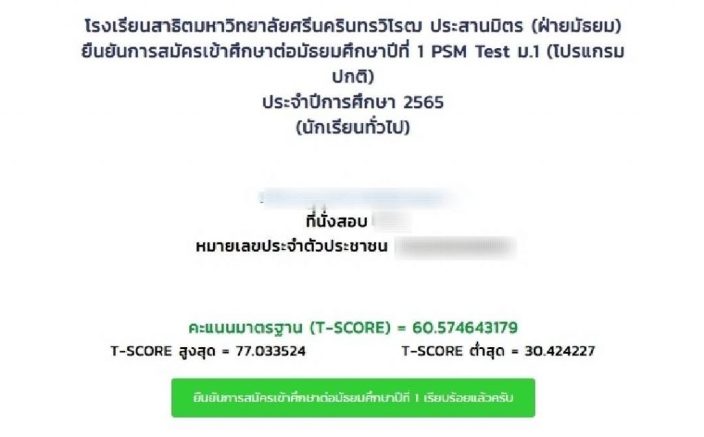 ตัวอย่างคะแนนที่ประกาศในวันที่ 29 ธันวาคม 2564