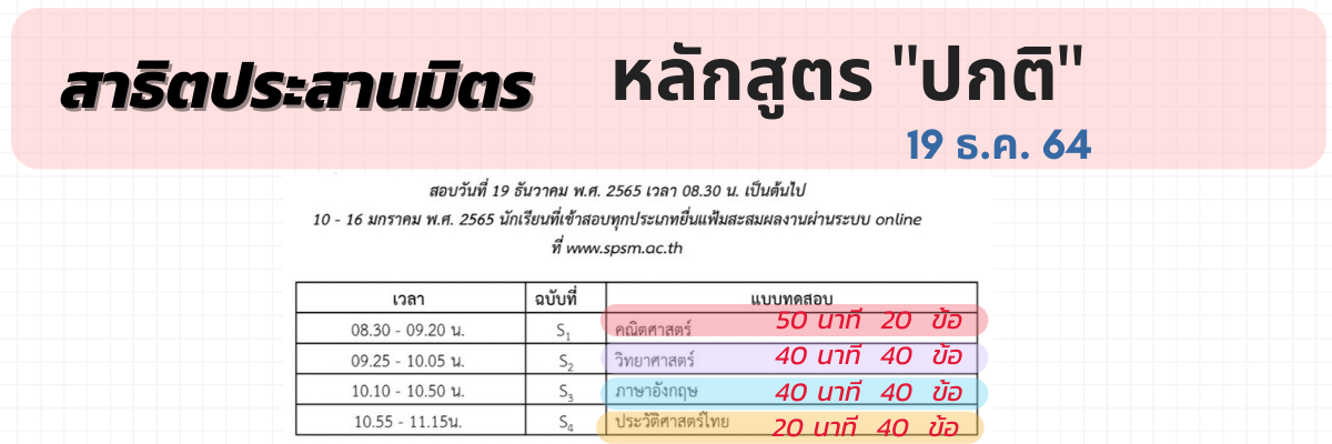 สอบจริง สาธิตประสานมิตร จัดสอบไปเมื่อวันที่ 19 ธันวาคม 2564 โดยจัดที่โรงเรียนสาธิตประสานมิตร